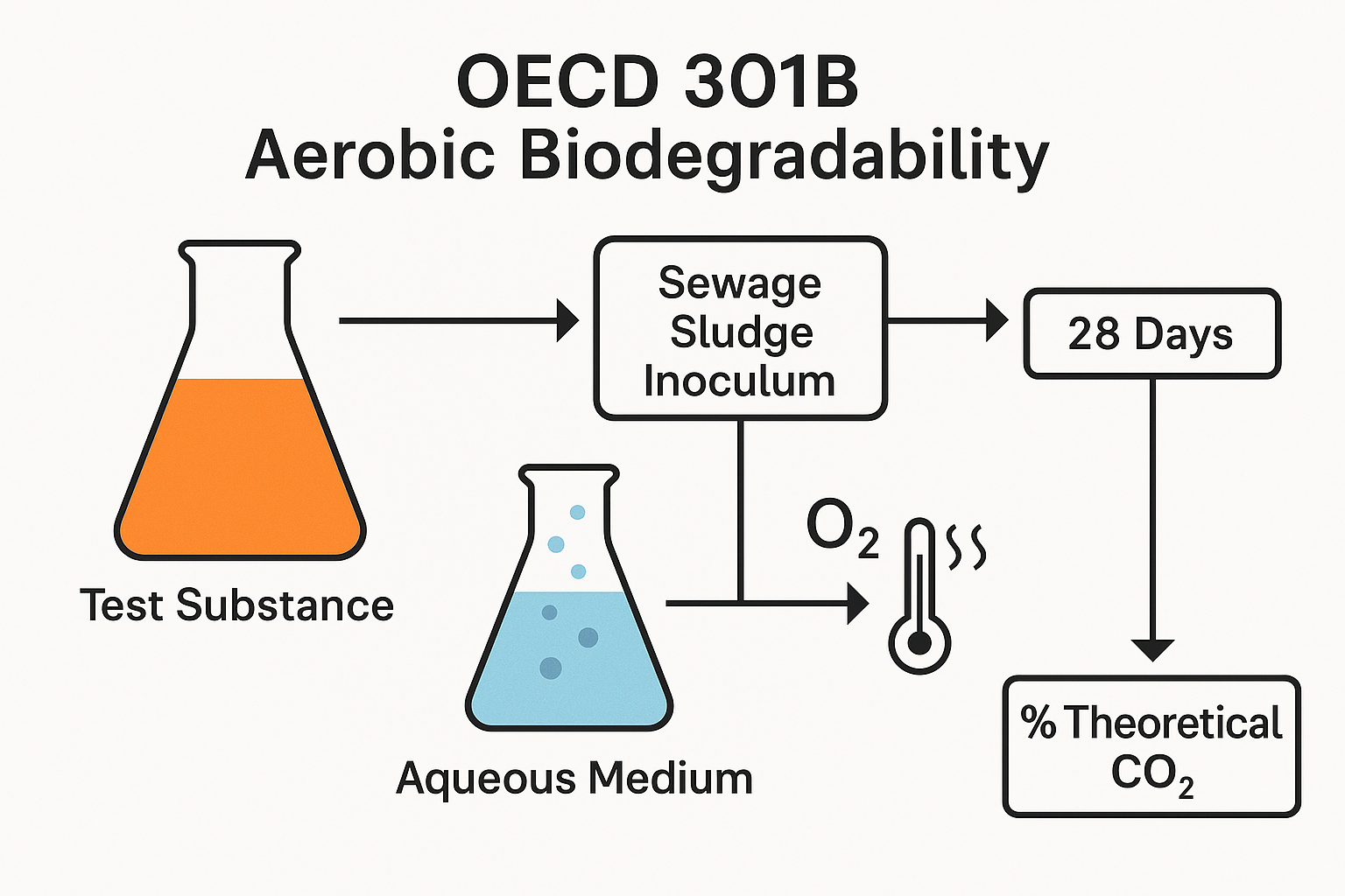 OECD 301B biodegradability testing measures how quickly microorganisms break down an organic substance under aerobic conditions. The test tracks carbon dioxide (CO₂) released during biodegradation. Regulators and manufacturers use this method to determine whether a material meets the criteria for ready biodegradability.
