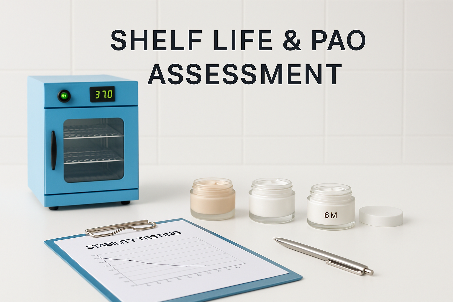 Shelf Life and Period After Opening (PAO) Assessment shows how long a cosmetic product stays safe and stable before and after opening. This evaluation helps you assign the correct expiration date and PAO symbol for your packaging. As a result, your product stays compliant with global cosmetic regulations.